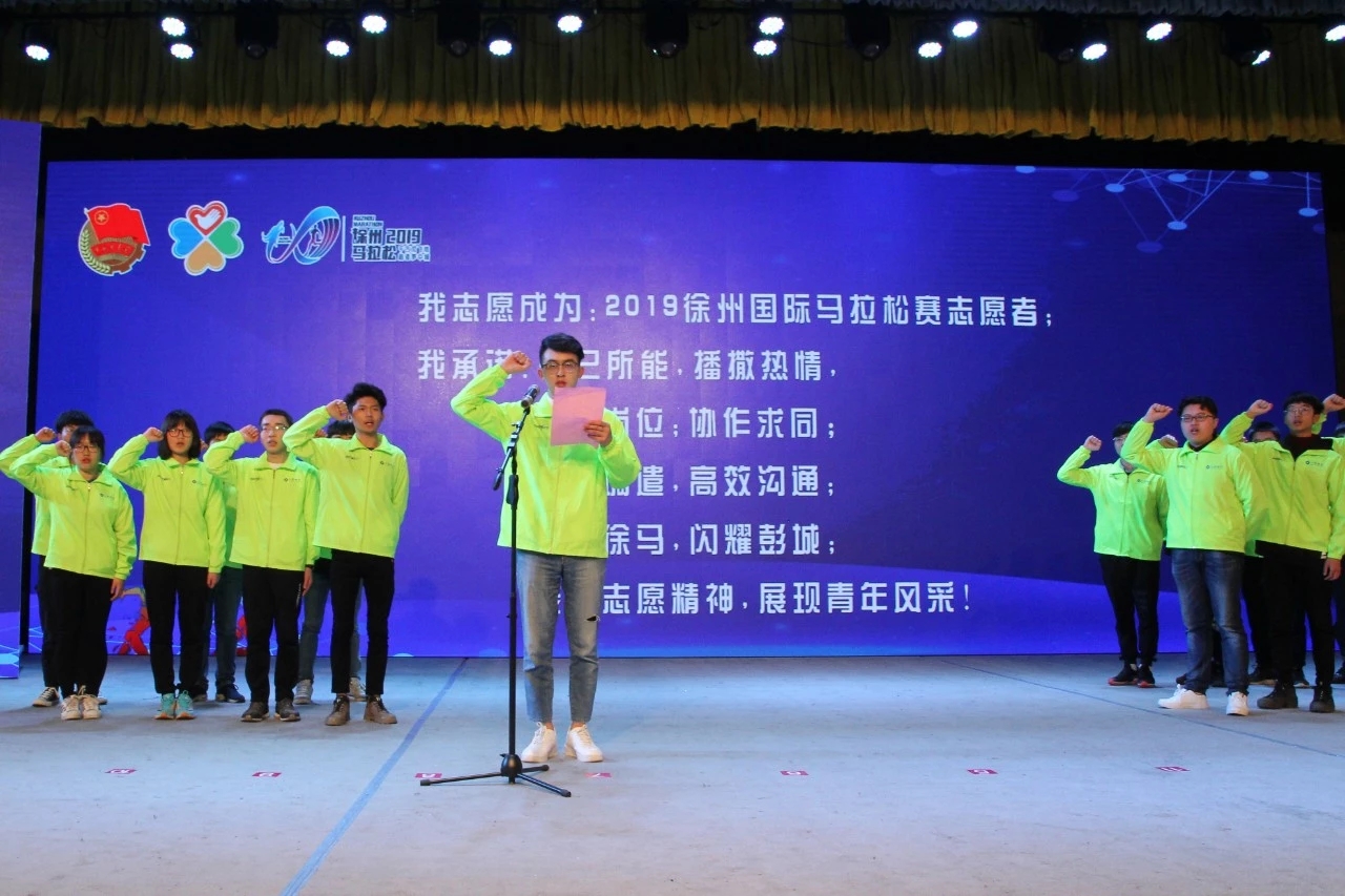 3月20日,2018年度徐州市青年志愿服务行动总结表彰暨2019徐州国际马拉松赛志愿者誓师大会在徐州工程学院举行。市政协副主席张耀环,徐州工程学院副校长、党委常委张宁,市政府副秘书长、徐马组委会副主任周广春,市委宣传部副部长、市文明办主任、市志愿者联合会会长沈丽,团市委书记潘晓等领导出席会议。此外,2019徐马志愿者相关高校团委负责同志,2018年度徐州市青年志愿服务行动获奖代表,青年社会组织代表和徐马骨干志愿者代表共计300余人参加了此次会议。本次会议旨在总结2018年全市青年志愿服务的工作经验,展示青年志愿服务成果,激发2019徐州国际马拉松赛志愿者们的服务热情,引导广大团员青年积极参与市委市政府中心工作,投身到大型赛会、三大攻坚战和新时代文明实践中心建设工作中!