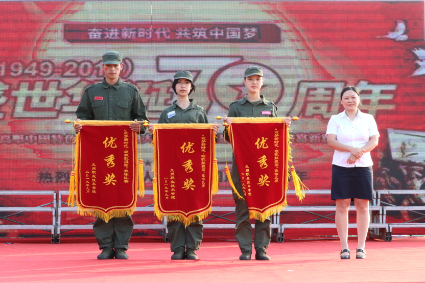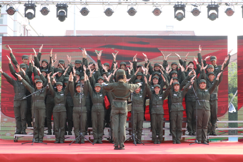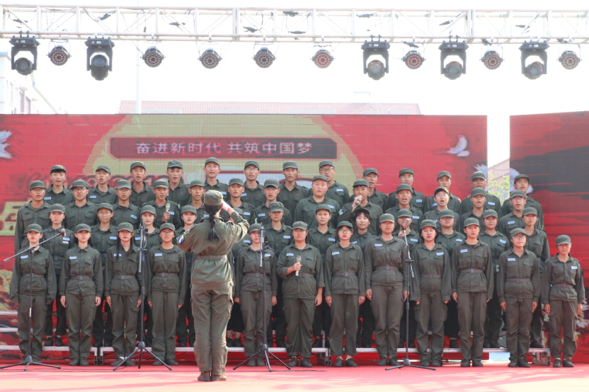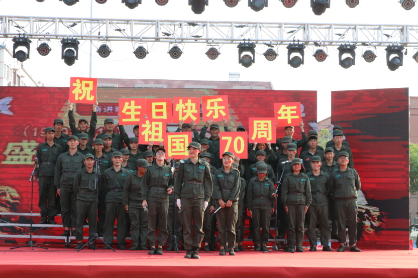为迎接新中国70周年华诞,共同祝愿祖国繁荣昌盛,同时为了教育青少年学生铭记革命历史,继承光荣传统,鼓励他们肩扛责任、勇于当担,在新生军训接近尾声的时候,于9月18日下午3点,组织2019级全体新生在学院运动场举办了“筑梦新时代,颂歌献祖国”大型歌咏比赛。学院军训团团长、军训成员及参训老师与同学们一起观看了比赛。