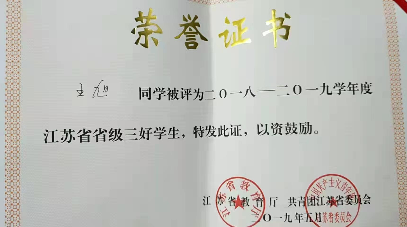 王旭始终相信:一段时期内接纳我的大学就是世界上最好的大学!也时刻认清自己所处的位置,脚踏实地去干,不忘初心,想要达到的目标终将会实现!作为一名学生,王旭一直坚守学习是第一要务的原则。每天都坚持上早晚自习,在学习上做到不拖拉,提前预习,对身边其他同学也起到了很好的带头作用;也主动帮助同学解决学习上的难题,和同学共同探讨、共同进步。连续两学年中取得专业第一名的好成绩,其中多门单科成绩排名第一。在学校学习专业技能之后,在每年的寒暑假都会到南京、苏州、常州、无锡等城市实习。