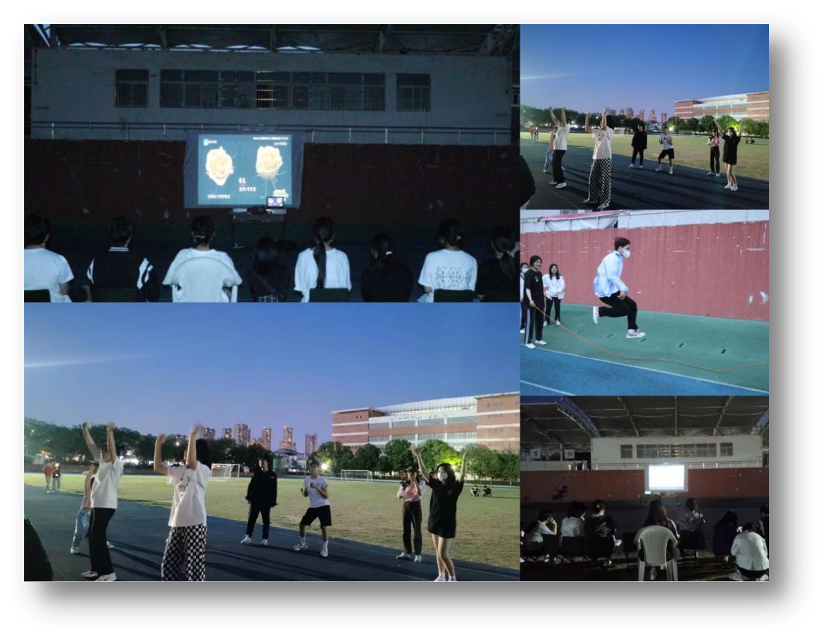 每天一项小活动,大家也都积极参与,电影欣赏拉近同学之间的友谊,并且享受电影带来的乐趣。刘耕宏毽子操加强疫情期间的体育锻炼。还有趣味小游戏考验选手之间的团结合作能力。一个人流汗,不如一起发光,荧光夜跑更是所有活动中最精彩的一项,他们手上戴着荧光手环,给校园带来了些许青春活力,度过完整的夏日校园夜晚荧光派对。