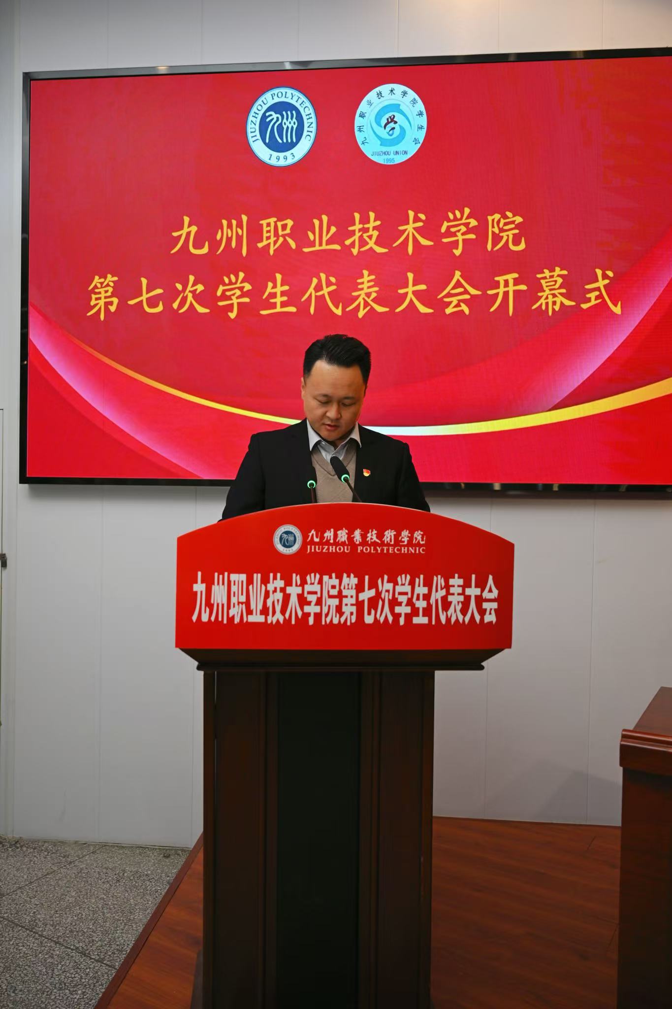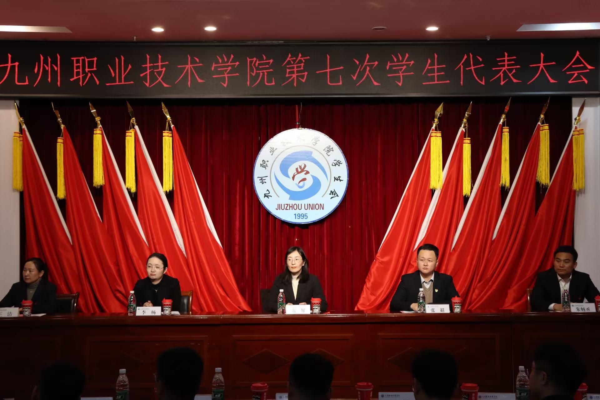 11月29日下午,太阳成集团tyc234cc召开第七次学生代表大会。共青团徐州市委副书记张娜,共青团徐州市委学少部部长、市学联秘书长李畅,校党委副书记张超出席大会并在主席台就座,校党委学生工作部、校团委等相关部门负责同志、各二级学院团总支书记、在徐兄弟院校学生会组织代表以及学生代表参加会议。