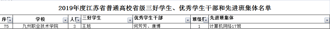 根据省教育厅、共青团江苏省委《关于表彰2019年度江苏省普通高校省级三好学生、优秀学生干部和先进班集体的决定》(苏教学〔2019〕5号)的文件精神,现将该文件予以转发并将我校获得省级三好学生、优秀学生干部和先进班集体的名单予以公布,内容如下: