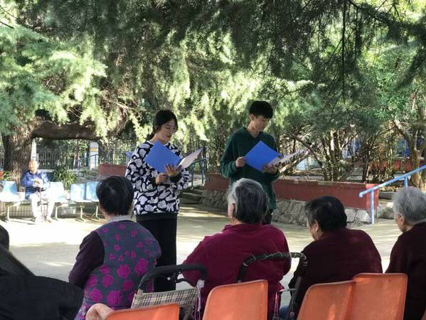 下午两点,同学们乘公交车到达敬老院,路途的遥远并没有消减大家的热情。同学们首先为老人送上了特意准备的点心和水果,表达了对老人的敬爱之情。随后,同学们纷纷献上自己精心准备的节目,舞蹈、唱歌、朗诵、二人转等节目的表演,让老人们感受到了浓浓的真情。在欢乐的氛围中,老人们情不自禁地与同学们合唱了一首《我和我的祖国》。同学们亲切地与老人们聊起家常,不时询问他们健康状况,并提醒他们天气转凉注意保暖、添加衣裳。不少老人也和同学们分享了改革开放前后的个人经历,鼓励同学们珍惜现在的生活,为梦想而努力奋斗,活动在融洽的氛围中结束。