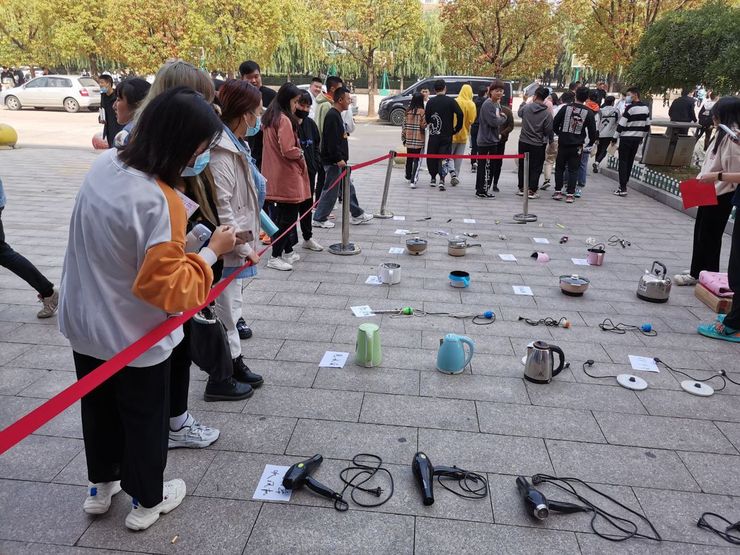 活动开始,医疗与健康学院团总支学生会对近期查处并代为保管的各类违禁物品进行了实物展出,以电水壶、热得快、电饭锅、电热毯、电夹板等违章电器为主,吸引广大同学观看。