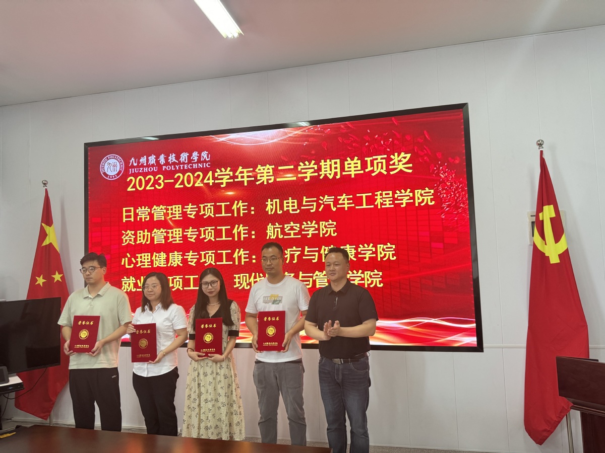 会上,朱处长宣读了《关于表彰2023-2024学年第二学期学生工作先进集体的决定》,对本学期学生工作表现优异的二级学院进行了表彰并颁发了荣誉证书。