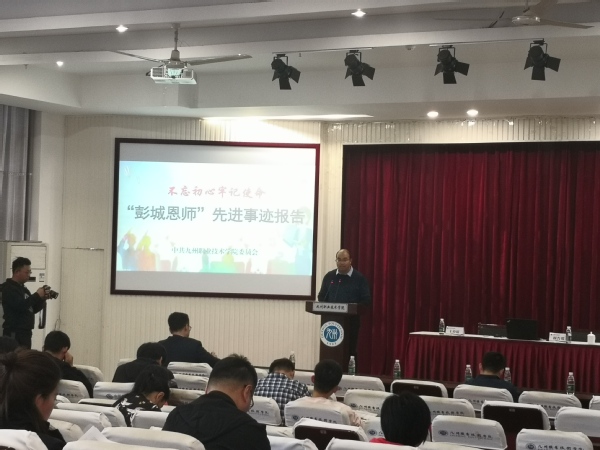 报告会同时聆听了获评今年徐州市“彭城恩师”的我院土木工程系教师团队先进集体,机电工程系刁海军老师先进个人讲述的先进事迹。土木工程系主任宋功业教授和机电工程系刁海军老师用平实的言语、生动事例、感人的故事讲述了他们各自的先进事迹。