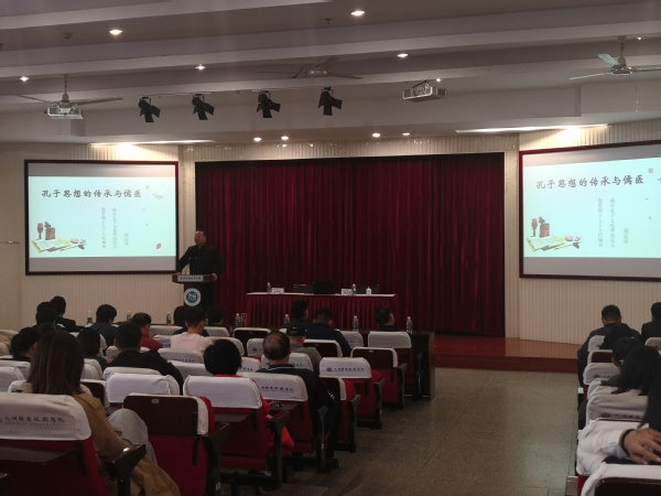 报告会首先聆听了复圣颜子七十八代嫡孙,曲阜孔子文化学院院长,中国管理科学研究院学术委员会特约研究员,中国新闻文化促进会国际交流合作委员会新闻发言人培训项目专家指导委员会委员,博士后工作站导师,山东政法学院等高校客座教授,世界颜氏总会署理会长、总秘书长,新加坡颜氏公会名誉会长,著名书法家颜廷淦所作的题为“孔子思想传承与儒师”的专题报告。