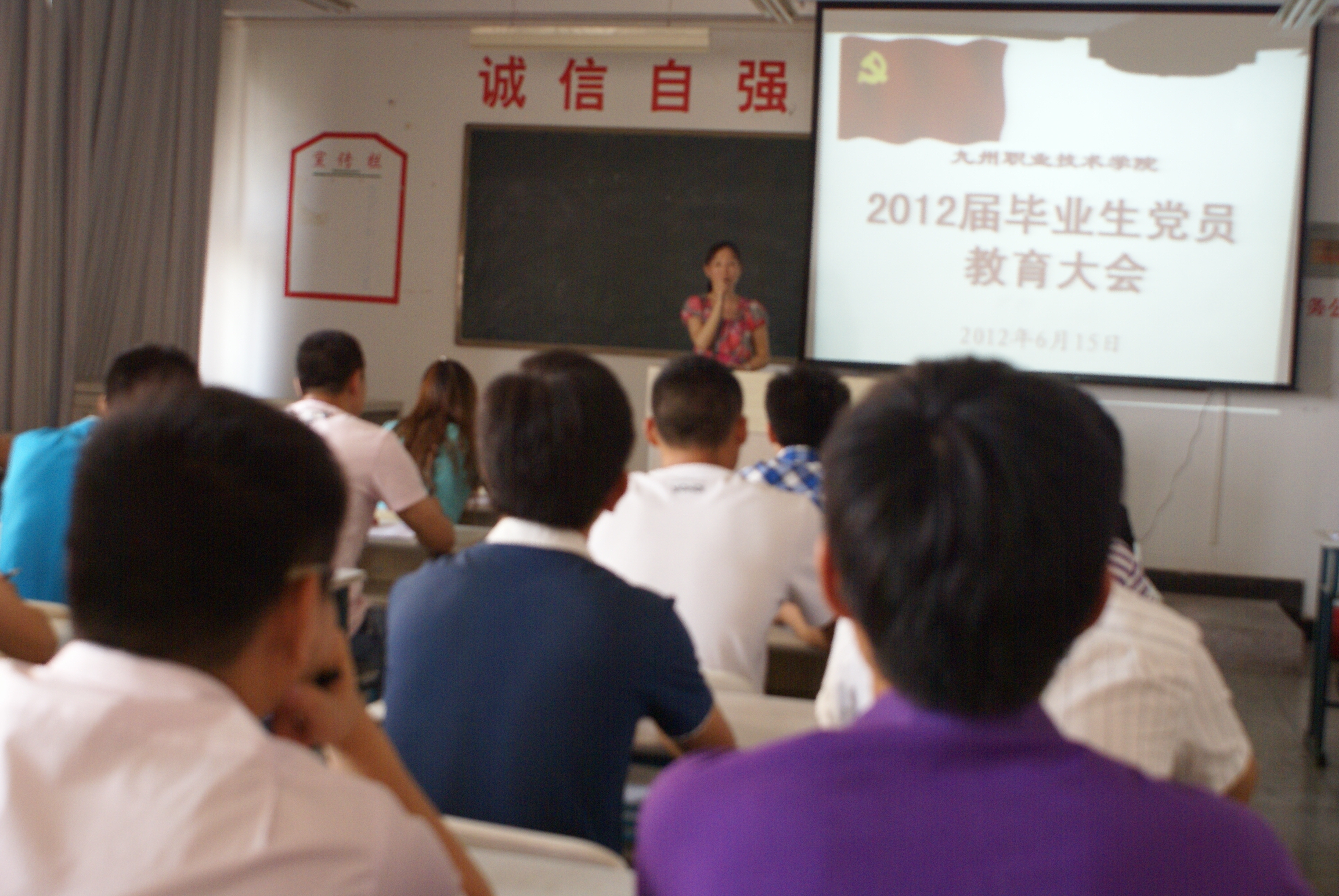 学院举行2012届毕业生党员教育活动 为充分发挥学生党员干部的模范带头作用,增强毕业生党员的党性修养,教育毕业生党员永葆先进性,争做文明离校表率,院党委于6月15日下午在主南506多媒体教室召开2012届毕业生党员教育大会。党委副书记俞亚芹、党委组织纪检秘书魏华老师、各系支部书记、委员以及全体毕业生党员参加了会议。 会上俞副书记为毕业生党员作了一场形象生动、意义深远的教育报告。要求全体毕业生党员牢记党...