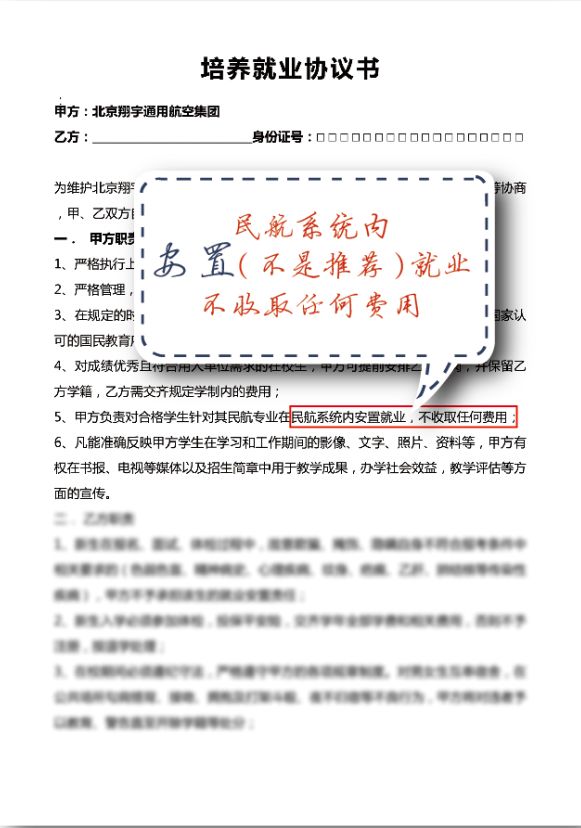 学生入学时面试合格,入学后即签订《培养就业协议书》,在校期间帮助学生在校考取相关职业技能证书(民航上岗必须,我院在校考试通过率96%,全国平均通过率不足30%),让学生真正学到知识、掌握技能、收获学历,更让学生全面提升职业素养和养成优雅气质,进而从容开启自信、成功的职场人生。保障民航系统内安置就业。