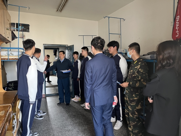 随后,航空学院赵教官、宿管中心杨莉莉带领学生干部集中对凝心楼-8、慎言楼进行了卫生大扫除检查。检查过程中,宿管中心重点对宿舍卫生(楼道垃圾、死角)、用电安全以及防火、防疫等诸多方面进行了检查。同时,航空赵教官并不时询问宿舍同学关于安全用电、防盗防骗防火等日常宿舍生活中需要掌握的基本知识、基本技能方面的问题。检查发现,各宿舍卫生状况普遍良好,基本做到了宿舍通风良好,空气清新、被褥衣物叠放整齐,地面、桌面干净整洁,用电合理、安全。但与此同时,也发现个别宿舍“不达标’,存在不同程度的卫生死角,空气质量较差,电线随意拉、不断电、物品摆放不整洁等问题。针对这些问题,赵教官当场给予批评、教育,并责令相关宿舍即刻整改,消除各种安全隐患。整个检查过程不时传来阵阵欢声笑语,现场洋溢着亲切自然和谐的气氛。