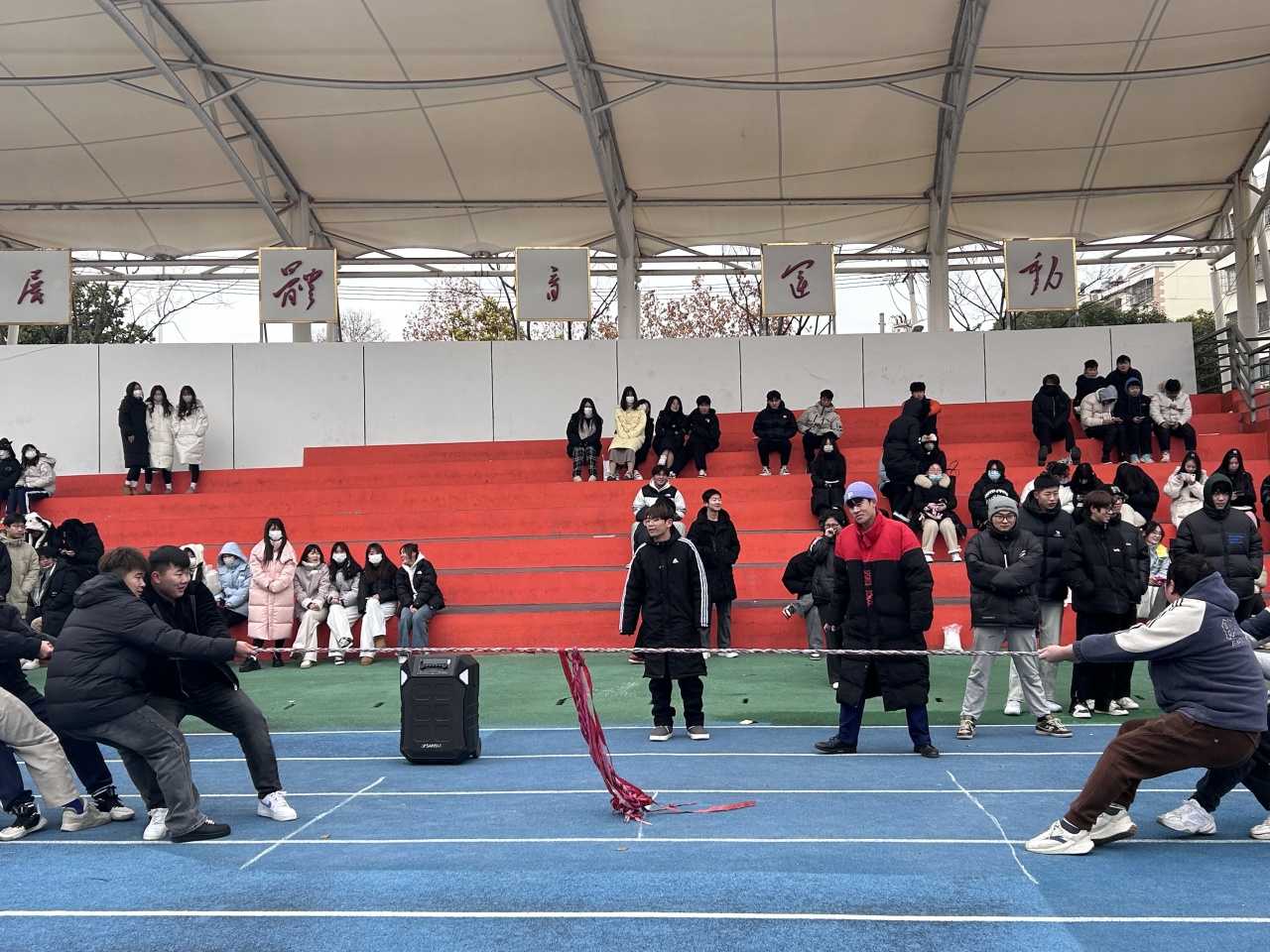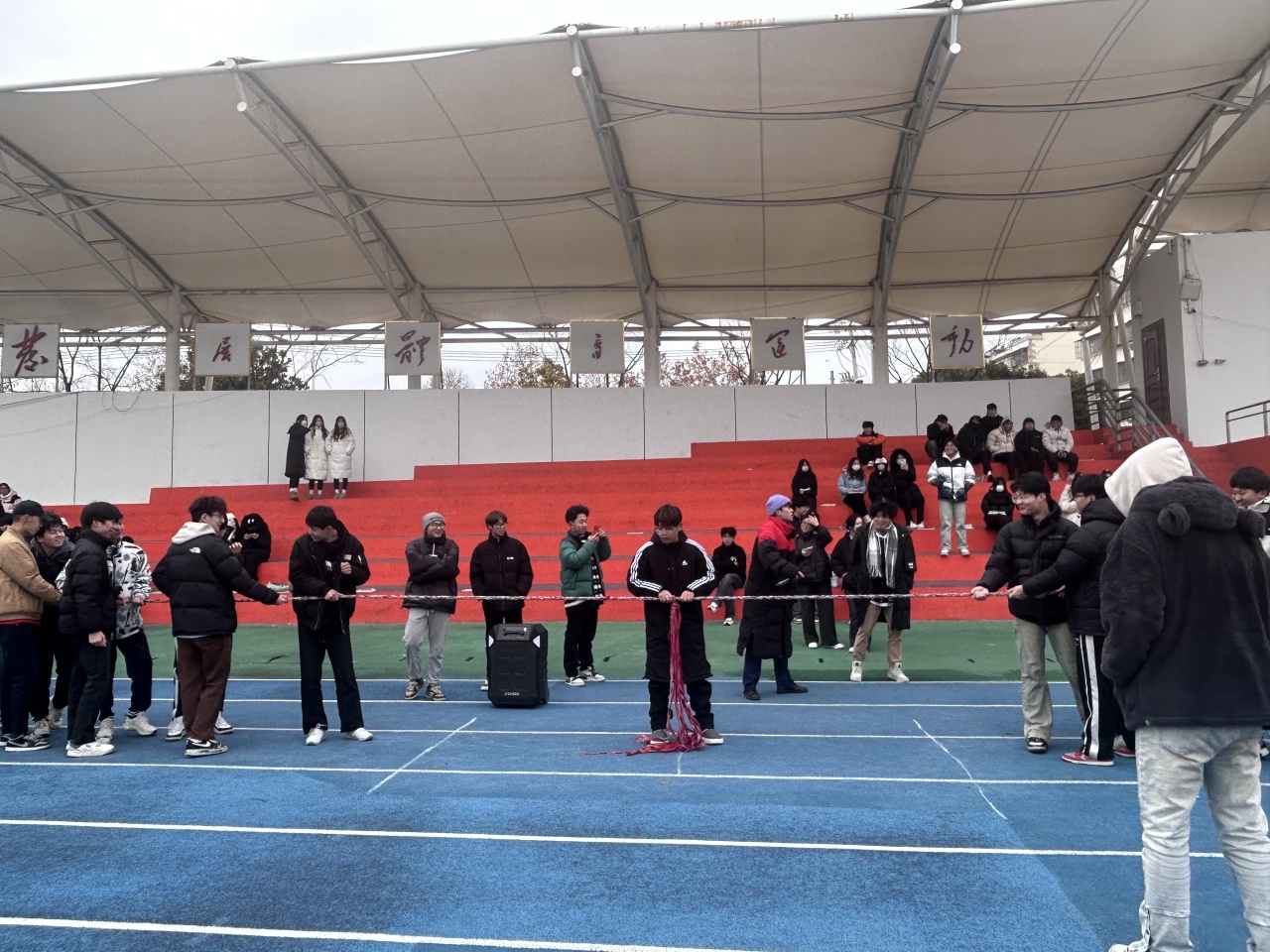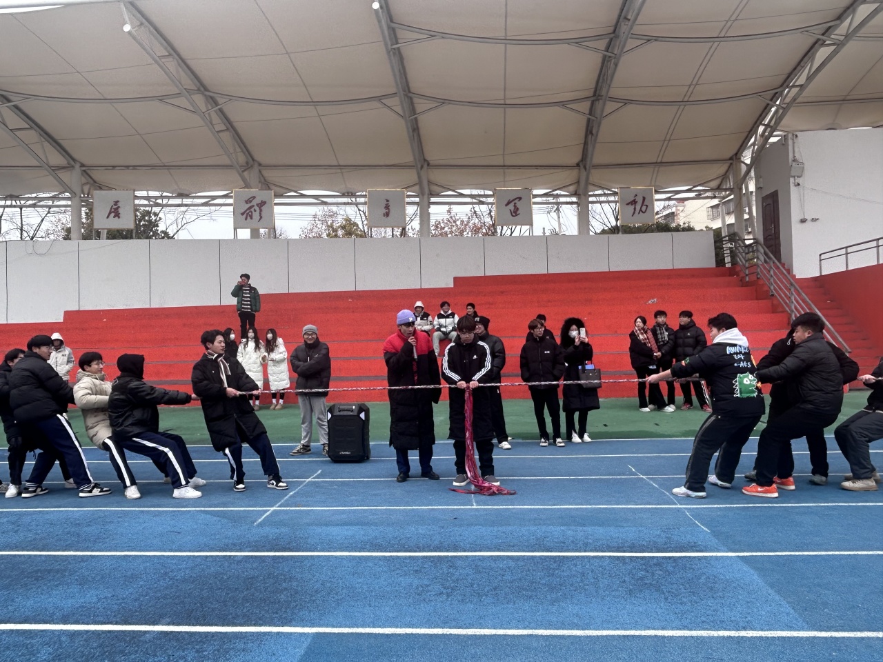 一根绳,一条心。随着同学们激情的加油呐喊声此次航空学院拔河赛第一场比赛正式拉开序幕。