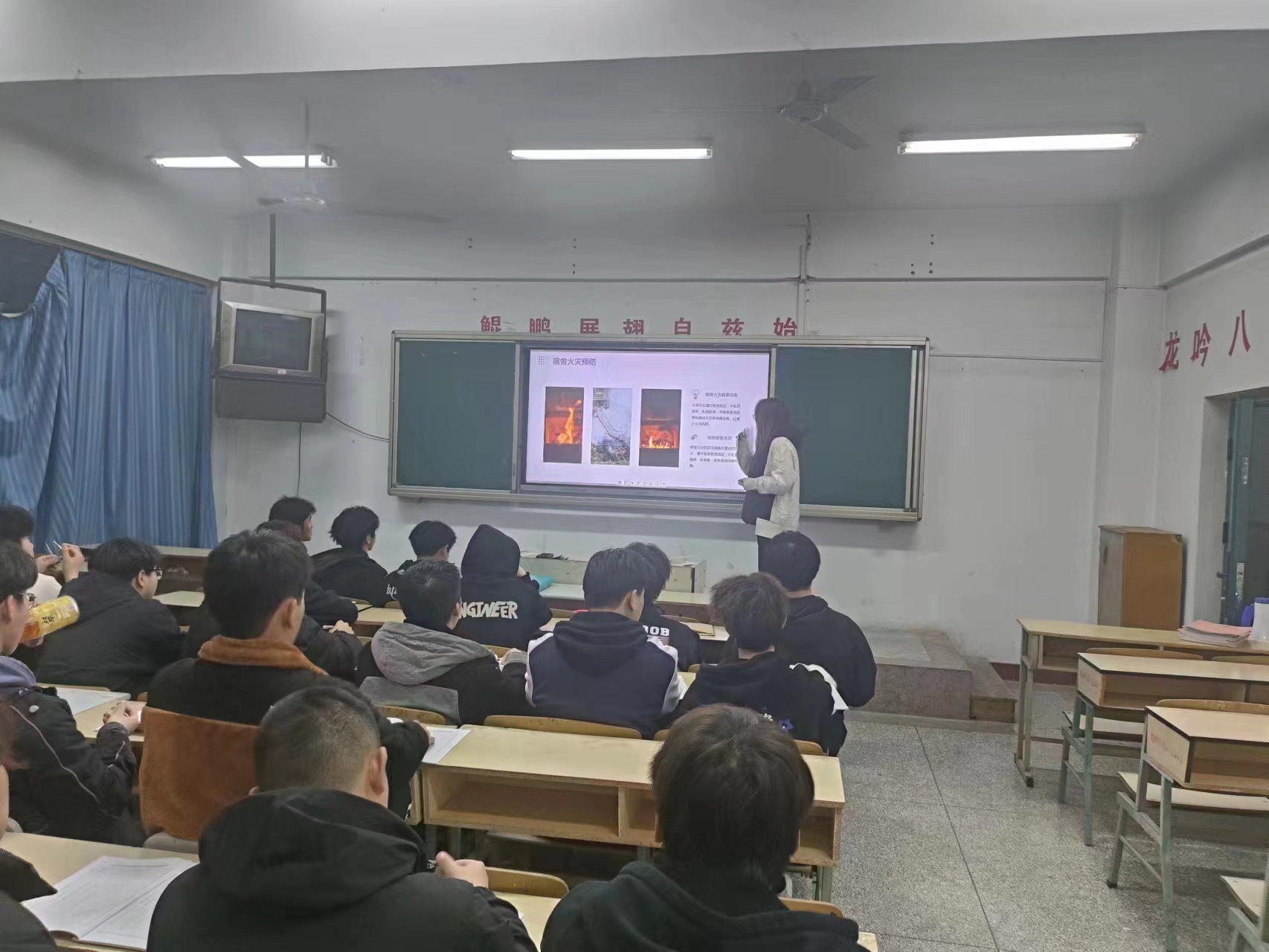 5.寝室防火安全教育:教育学生注意寝室用电安全,不使用违禁电器,防止火灾发生。