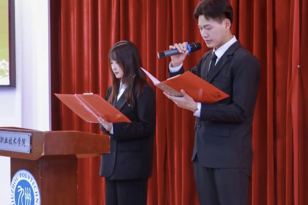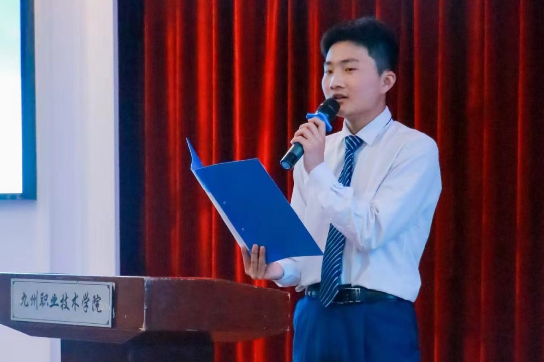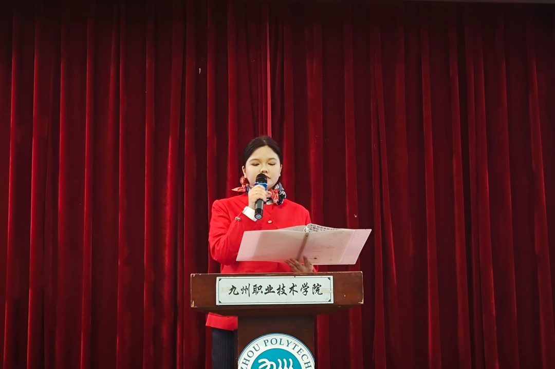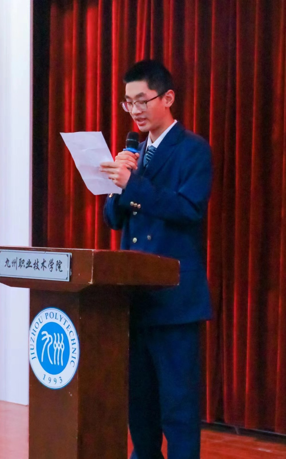 一九二一年的七月 一艘小船带着崇高的信仰 承载着民族的苦难,5号是来自机务班的钟启鹏同学他朗诵的是《红色赞歌》。