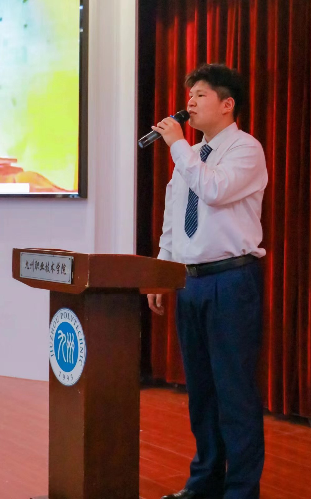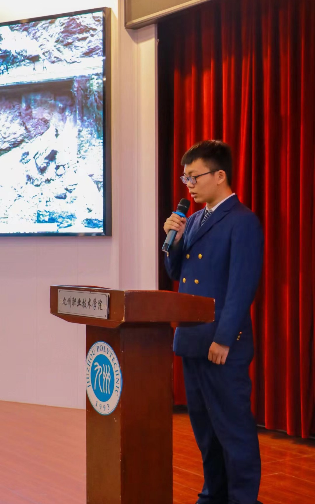通过历史的眼眸 我们站在岁月的肩膀上远眺,这是一个承前启后的时代 这是一个日新月异的时代 这是一个继续开来的时代,6号机务班的荣江涛同学是我们本次比赛的最后一名选手他朗诵的是《少年中国说》。