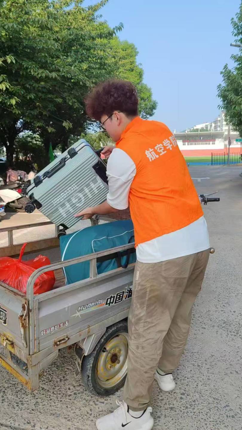 8月31日,为了让新生尽快适应环境、迅速找到宿舍楼和报到地点,航空学院学生会工作人员在文体馆门口迎接新生,帮忙搬运行李送到宿舍。