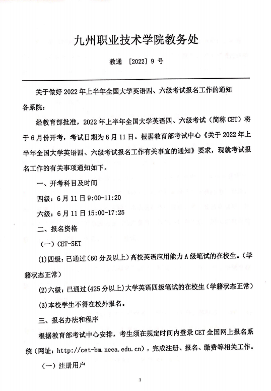 大学英语四六级考试报名通知