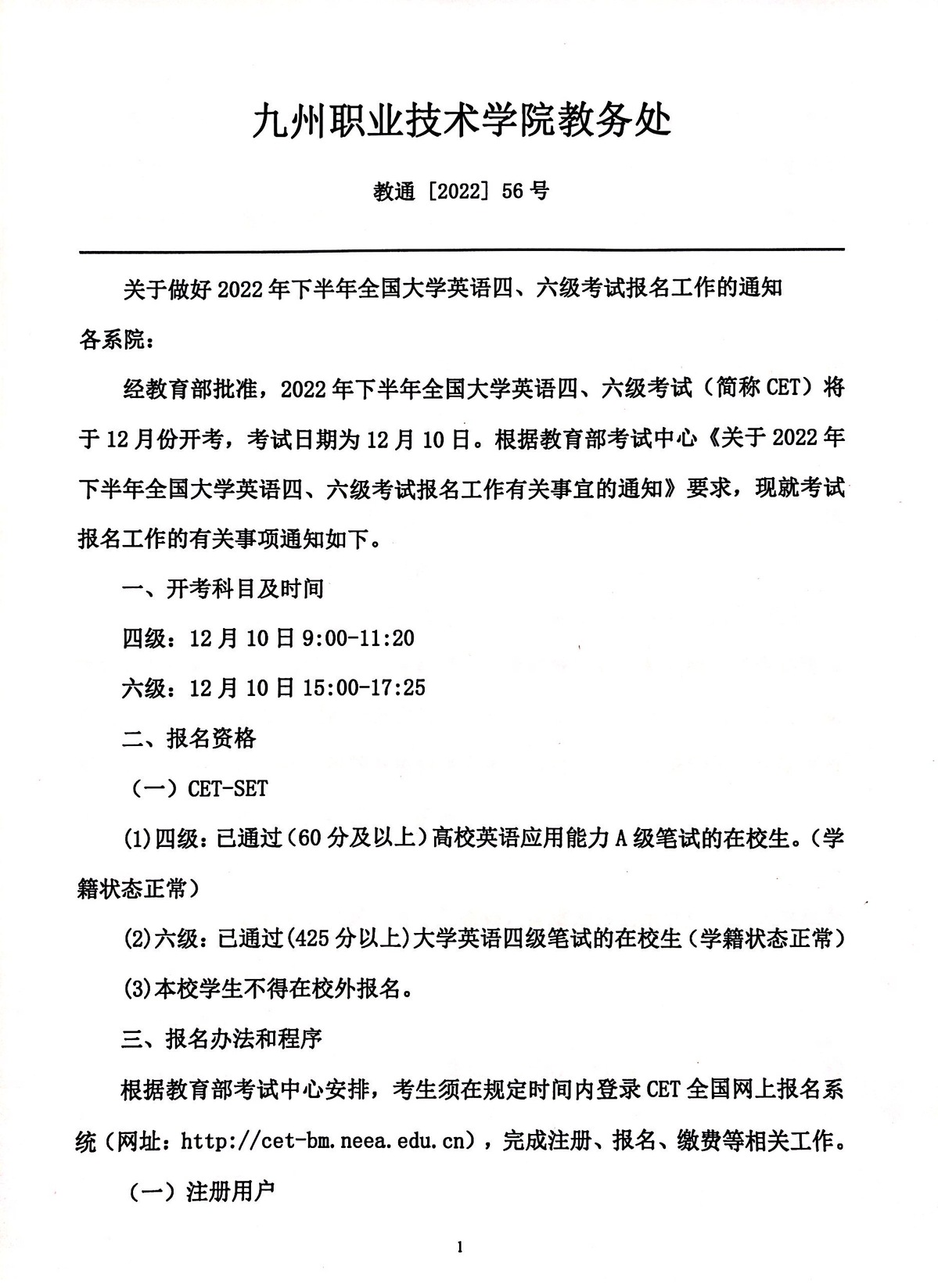 关于做好2022年下半年全国大学英语四、六级考试报名工作的通知
