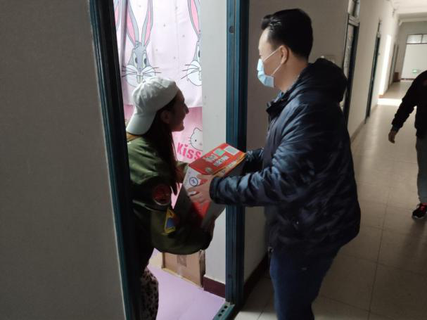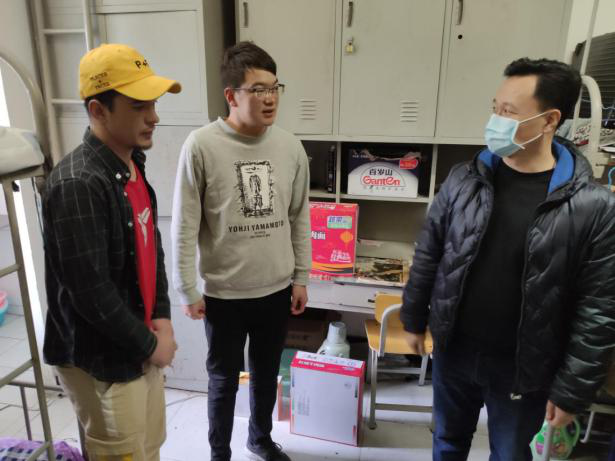 3月9日上午,学院院长助理张超、学工处处长武艳、副处长朱存各、李兆亚和学工处杨宇彤老师一起前往学生所在宿舍看望,详细了解同学们近期的生活、学习状况,并为同学们看望留校学生,给学生送上生活必需品物资。