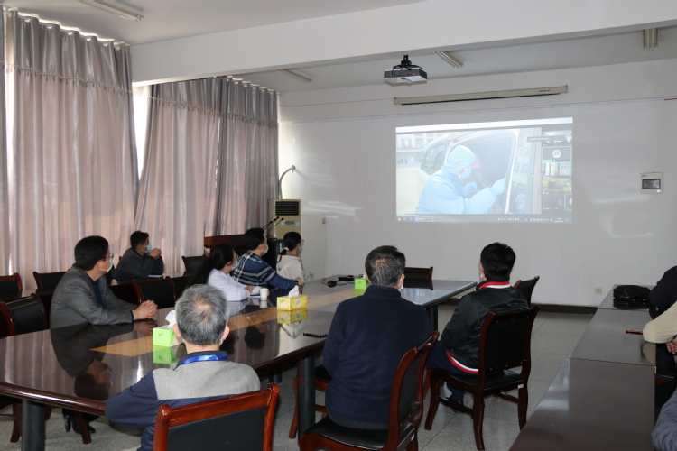 图八:市疫情防控专家商瑞瑞及我院疫情防控领导小组全体成员通过视频直播观看演练流程