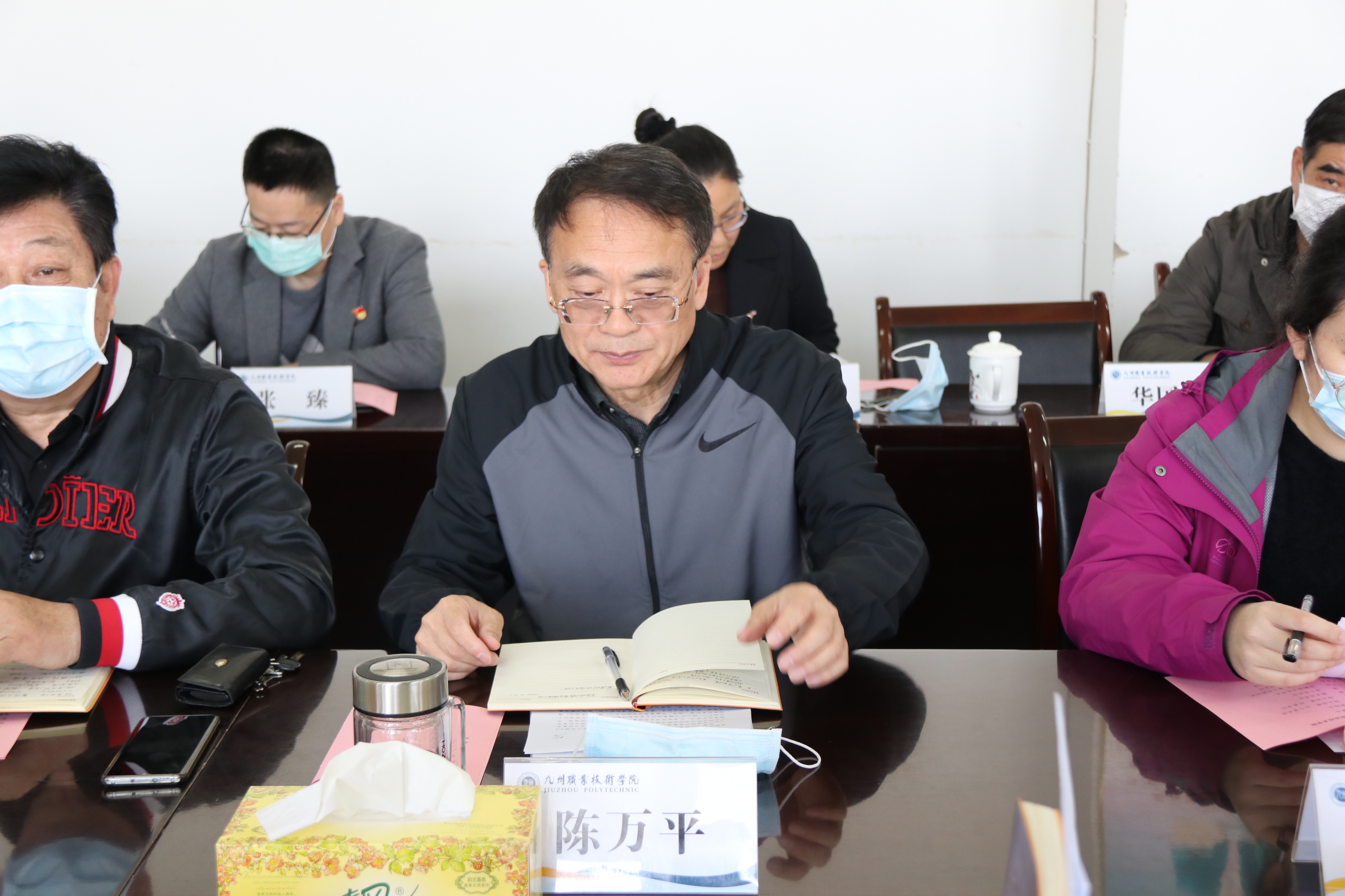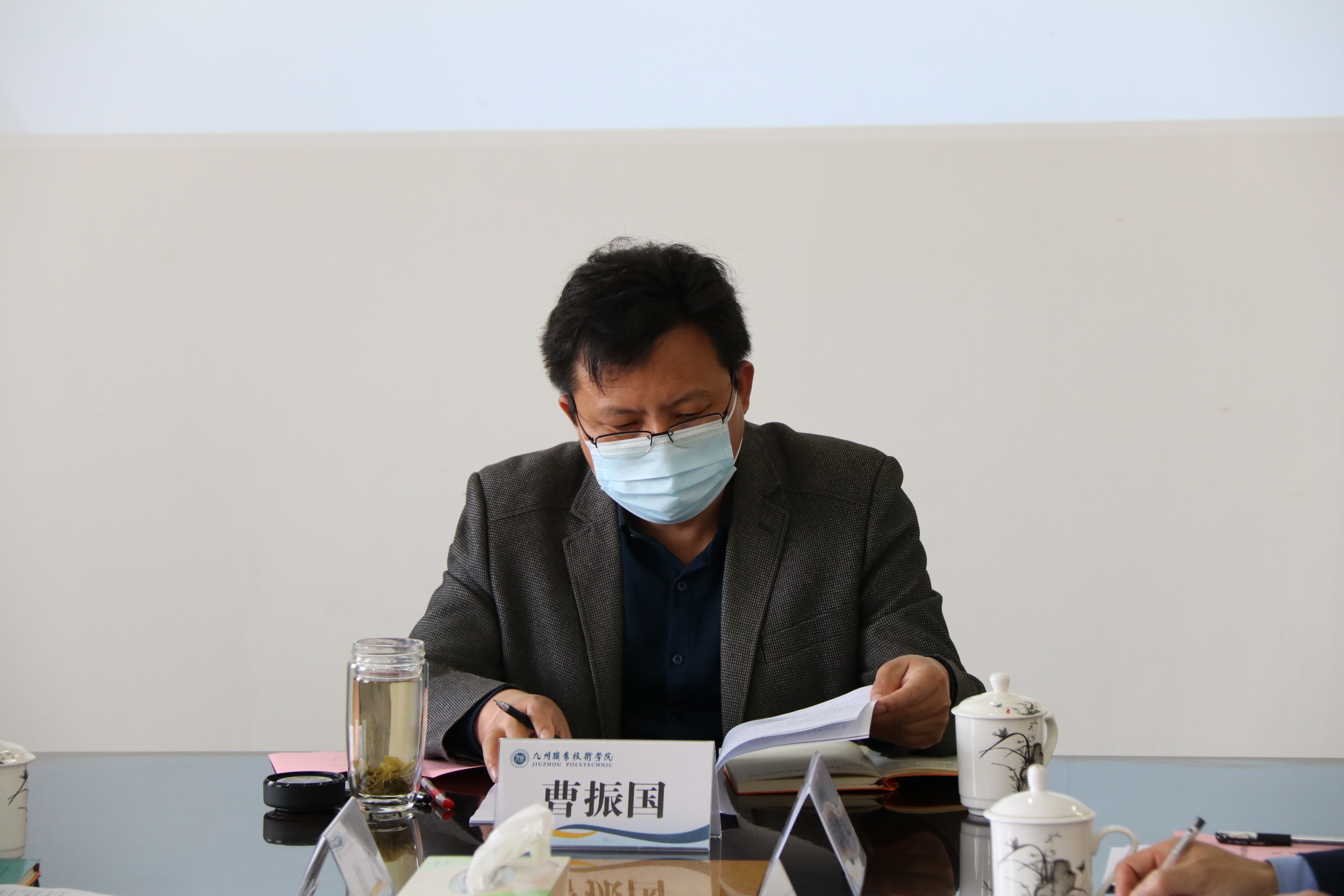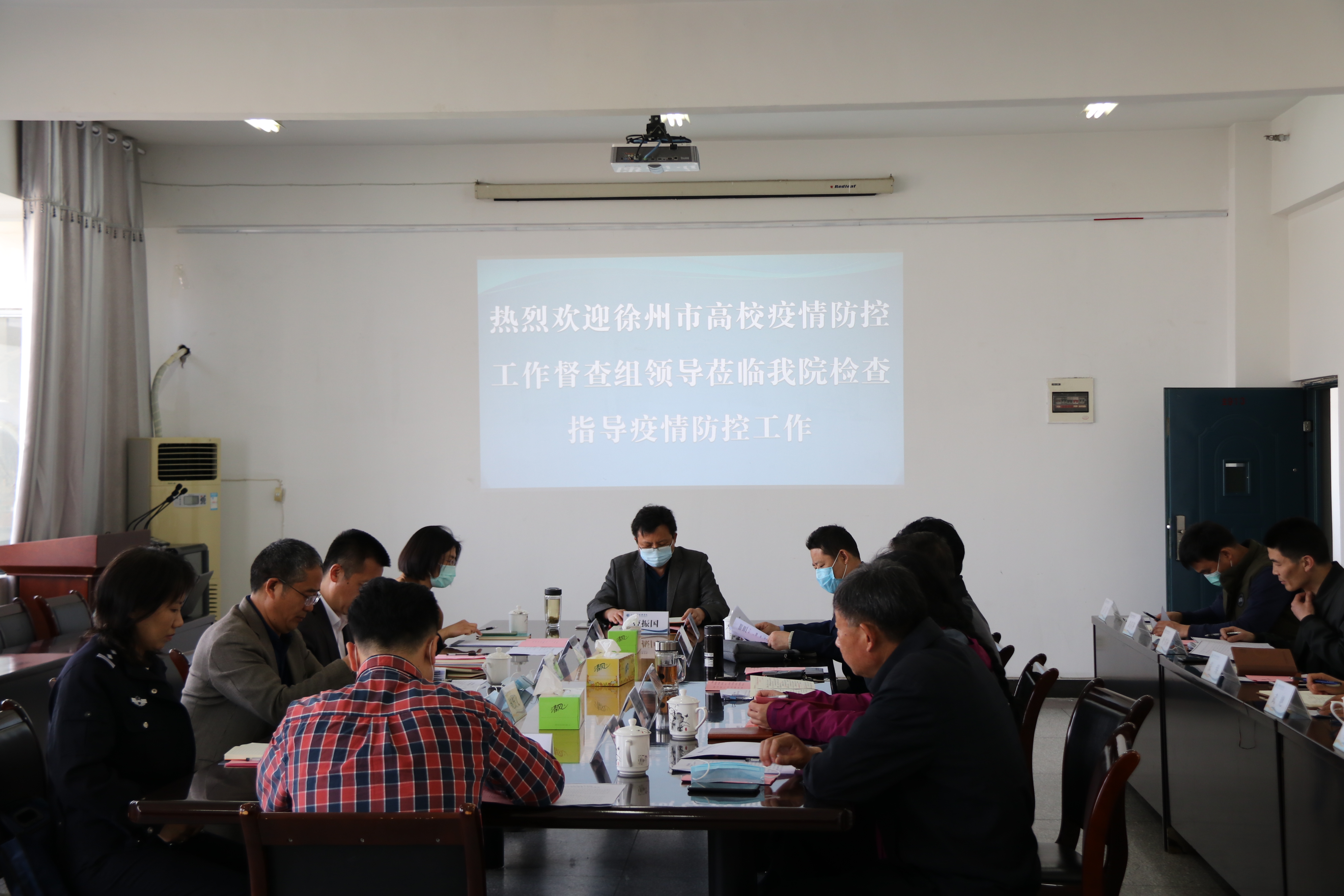 董事长曹竟成对徐州市高校疫情防控工作督查组苏建刚组长等一行莅临我院督查验收并指导疫情防控工作表示欢迎和衷心的感谢,并简要介绍了学院疫情防控的主要情况。副院长陈万平代表学院从领导靠前指挥,压实各级责任;落实整改师生返校工作各项预案、方案,抓好疫情防控重点工作措施;存在的主要问题等三个方面,向督查组作了详细汇报。