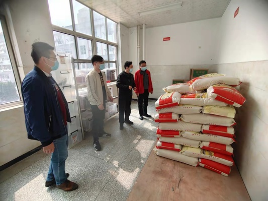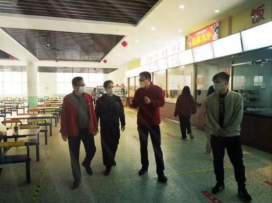 4月7日上午10:00,学院副院长曹振国带队深入食堂检查指导疫情防控及物资储备工作。总务处、安信餐饮公司以及君创餐饮公司相关负责人员陪同检查。