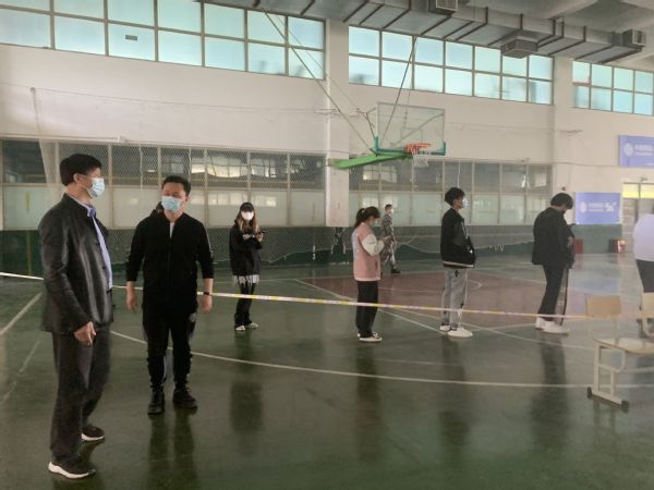 4月18日上午,党委书记吴永平深入学校核酸检测现场指导工作,党委副书记张超陪同。