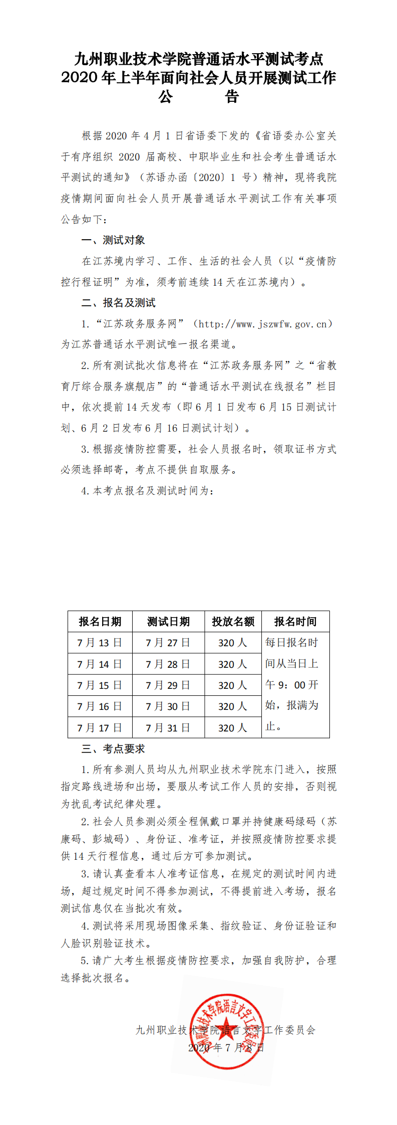 2020年(上)面向社会人员普通话测试工作公告